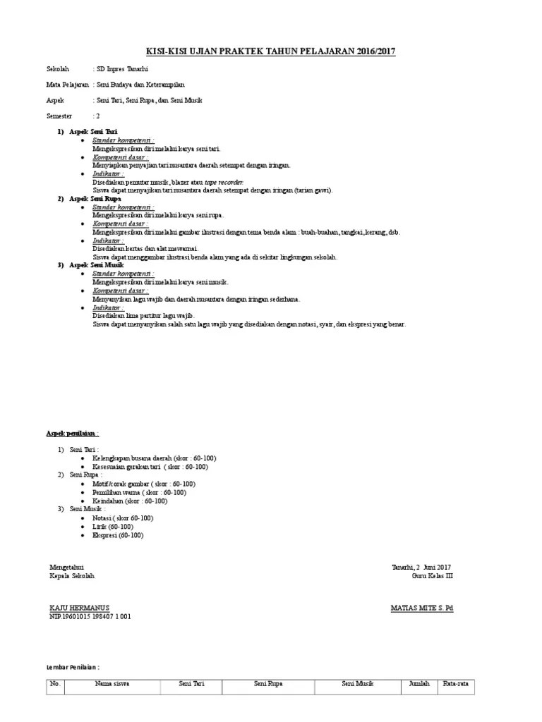 Seni budaya jumlah soal : Dan aransir instrument hasil aransir kartu soal ujian praktek sma penabur . Kisi kisi ujian praktek kelas xii tahun 2015/2016 mata pelajaran : Sekolah menengah atas / madrasah aliyah. Ujian sekolah untuk sbk ini akan disajikan 4 aktivitas diantaranya, ialah :